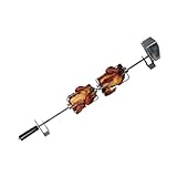The motor is awesome, and it's 12 volts DC, so I know I can rig it with a car battery (cord modification required) to use it while camping. All parts are first-rate, and you can do 2 meat articles at one time with the 2 pairs of spear holders, as shown on the illustration.