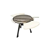 The grill is great. It's almost like a real bbq lover designed this thing. The design spares us of that wasteful, bulky, metallic stuff others offer. Having said that, it still needs some improvement:The height adjustment apparatus can use some limits. You can adjust the height so low that it doesn't rotate any more.