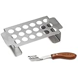 Love this little rack. It's a very simple rig and very easy to use. Just cut the top off the pepper and slide the coring tool inside to pop out the core. Fill with your favorite cheese. I use a plastic bag with the corner cut off to fill the peppers. Wrap with bacon and bake. If you use this on a BBQ grill don't place the peppers over the flame use the indirect heating method. Very simple to use and lots of fun trying new combinations.