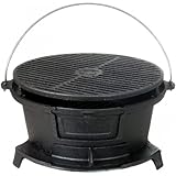 This grill is bigger than it looks, yet, surprisingly light. The item arrived quickly and very well packaged. I'm impressed with the vendor and with the product. There were no reviews posted when I purchased this, so I hesitated (about 3 months) before purchasing, and am happy to report just how pleased I am with this. Additionally the construction, cast iron pieces, is excellent, as well as the sturdy handle, which tucks conveniently away when not in use. You can see it in the photo, a detail I had originally missed.I had also shopped for the Lodge model most similar, which is in all the stores locally, as well as the Braai grill (at twice the price) Potjie Braai Hibachi.